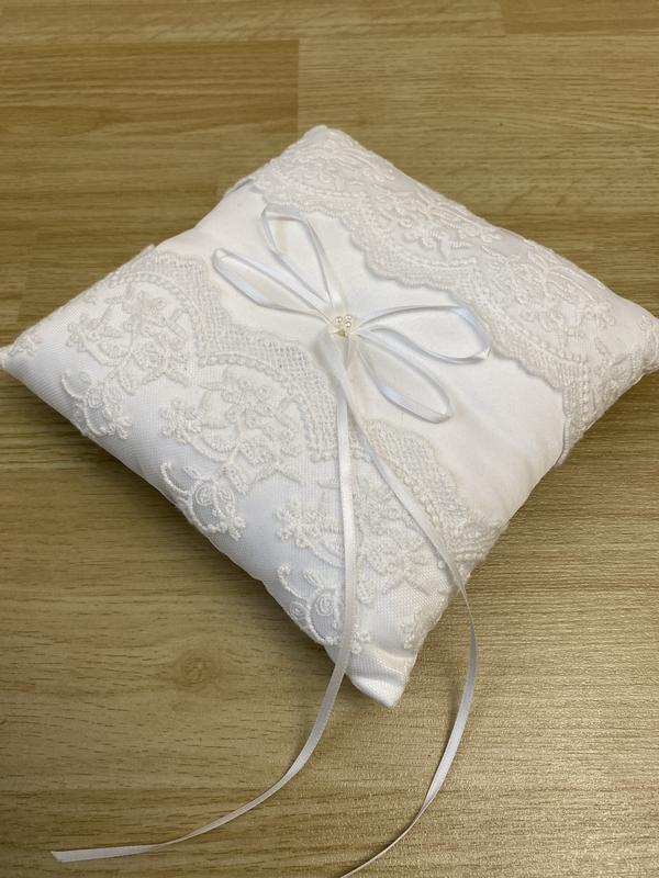 Подушка для обручок – невеликий весільний аксесуар, спеціально створений для зручної і красивої подачі обручок нареченим. Створює не тільки атмосферу індивідуальності, але так само підкреслює особливість урочистості в очах друзів і родичів. Красиво і правильно обрамлені обручки, збережуть у пам'яті тільки приємні спогади, а фото і відео роботи підкреслять гармонійність і невідпорність урочистого моменту. Відкладаючи у бік конвеєрні весільні аксесуари РАГСів та Палаців одруження, подушечка для обручок стане незамінним і дуже важливим атрибутом, у створенні своєї особистої історії. Приділяючи особливу увагу виїзних церемоній, весільні подушечки під обручки не тільки виділить загальну концепцію урочистості, підкреслити які зможуть весільні набори на протязі всього весілля, але так само не залишиться без уваги, коли молодший брат і сестра піднесуть цей атрибут з обручками молодятам.