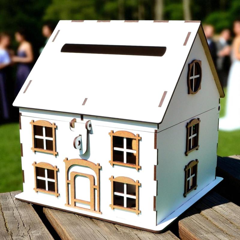 Домик копилка на свадьбу 20х20х22 см деревянная коробка для денег сундук с крышей свадебна...