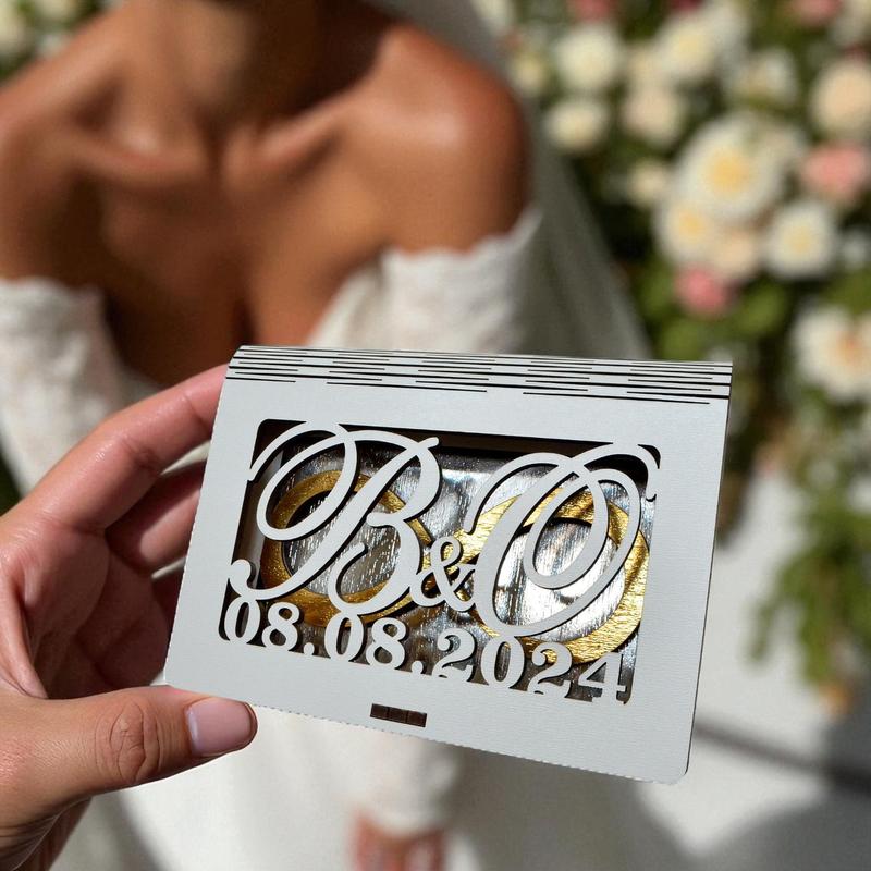 Свадебная подставка для обручальных колец 14 см, футляр с инициалами для обручалок коробоч...