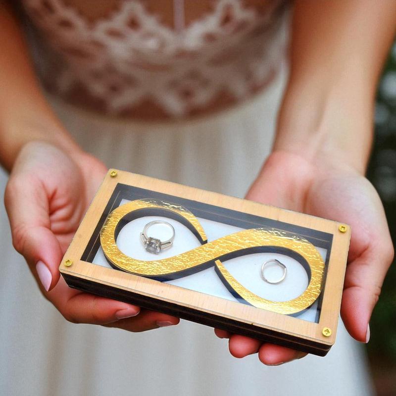 Свадебная Подставка "Бесконечность", закрытого типа со стеклом. Размер: 15 х 7,5 х 2 см. Материал: ЛДВП. Деревянные подставки для обручальных колец незаменимый аксессуар во время свадебной церемонии, они будут прекрасно смотреться на свадебных фотографиях и в руках молодоженов во время торжественного обмена кольцами! В ассортименте есть круглые подставки под обручальные кольца с буквами именами и датой свадьбы, свадебные коробочки для обручалок со стеклом и инициалами молодоженов, коробочки для колечек с гравировкой имен и даты, деревянные коробочки для кольца для предложение свадьбы, коробочка на предложение руки и сердца - выходи за меня свадебная церемония обмен обручальными кольцами невеста и жених, футляр для обручального кольца для невесты, подставки для обручалок в форме сердца, в виде сердечка на свадьбу. Срок изготовления оптовых заказов: 1-3 дня. Наличие необходимого цвета/модели уточняйте до оформления заказа! Возможна разработка векторных макетов. Если у Вас есть идея для изделия с индивидуальной надписью или рисунком -- мы можем рассмотреть и сделать её под заказ. Больше интересных товаров Вы можете найти на нашем сайте: