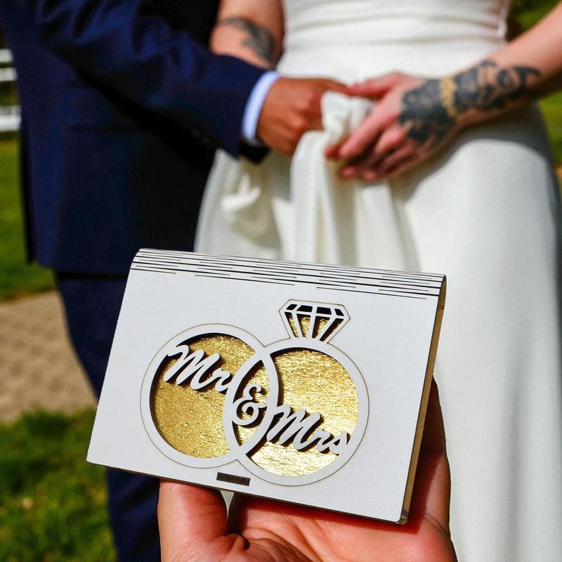 Свадебная подставка для обручальных колец 14 см, футляр "mr & mrs золото мистер и миссис"...