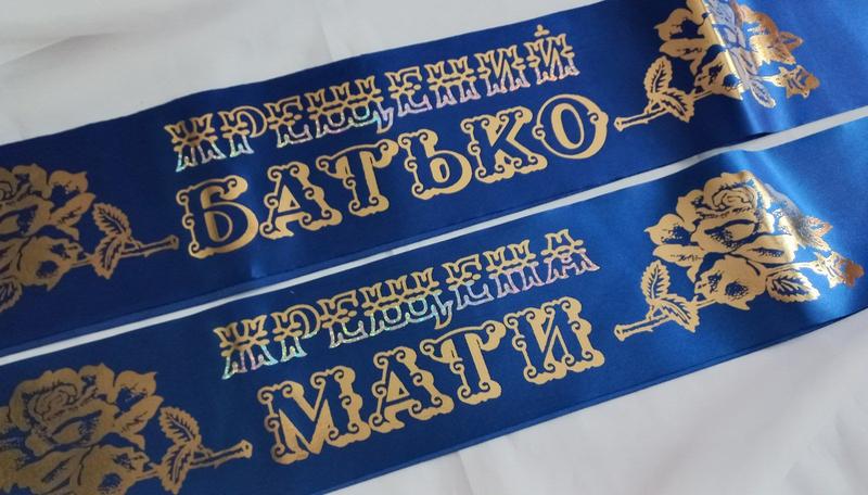 Пара свадебных торжественных лент Крещенным родителям в синем цвете с золотистой надписью. Материал - атлас + "золотой" трафарет. Стоимость - указана за пару (2 шт.)