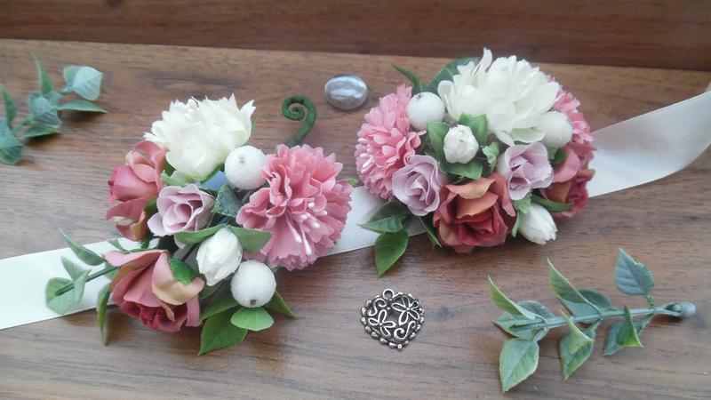 Трудно представить себе свадебное торжество без маленького, но такого значимого атрибута, как бутоньерка. И если Вы решили соблюсти все свадебные ритуалы и традиции, то без этого аксессуара Вам не обойтись. Ведь именно бутоньерки украшают одежду и подчеркивают статус участников церемонии. Эти роскошные мини-букетики в 3-х оттенках розового (розовый, коралово-розовый, пыльная роза) в сочетании с истинно свадебным цветом айвори несомненно привлекут взгляды окружающих. Они гармонично дополнят образ главных помощников на Вашем торжестве - свидетелей, выделят их из числа других приглашенных гостей и останутся как память о важном событии. Бутоньерки выполнены из тканевых цветов, искусственной зелени, декоративных флористических добавок. Цена указана за 1 комплект. Размеры: бутоньерка на пиджак - высота 11 см, ширина 7 см, бутоньерка на руку - длина 9 см, высота 7,5 см.