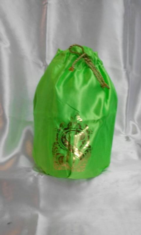 Мешочек для свадебных денег ― праздничный атрибут для сбора подарочных свадебных денег в виде атласного мешочка на золотистой тесьме с принтом "золотого рюкзака". Объем мешка ― 3 л. (надевается на 3-х литровую банку)