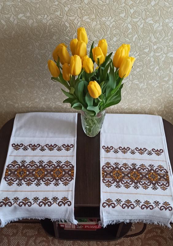 Один рушник під ноги, два на ікони, ціна кожного 500 грн, маленький хрестик