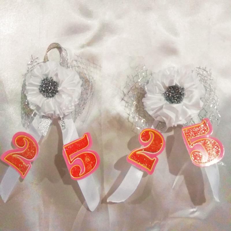 Бутоньерки на серебряную свадьбу. Крепление - застежка. Цена за 2 штуки.
