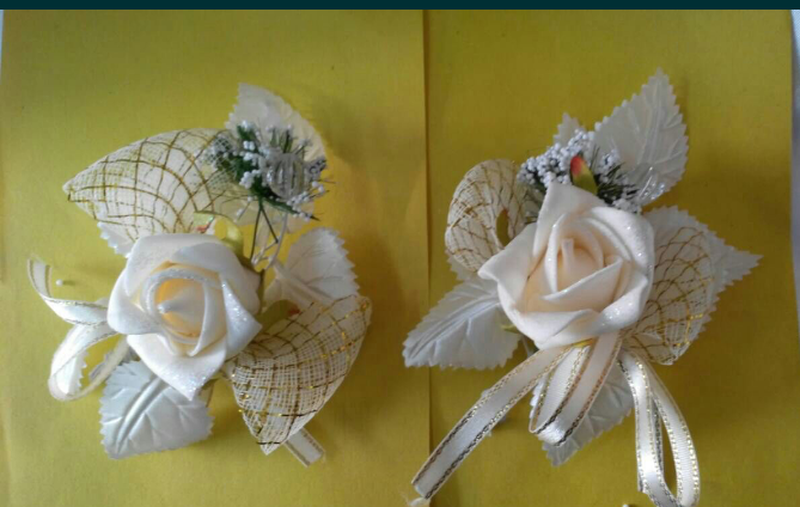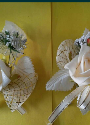 Важным и ярким аксессуаром для украшения наряда является бутоньерка для camedia. Такой маленький и красивый букетик делает мужской костюм не просто торжественным, а свадебным. Практически во всех случаях бутоньерку одевает невесты невесты, после того, как пройдет выкуп. Молодой дарит букет, а девушка в знак любви прикрепляет к пиджаку цветок. Крепить бутоньерку нужно на левый лацкан пиджака тончай или карман костюма. Если же вы решили заказать такие аксессуары и для гостей, здесь есть один нюанс – состоящие крепят цветы справа, а свободные мужчины слева. При выборе не стандартной, а слегка изогнутой бутоньерки, ее нужно прикрепить с помощью английской заколки в кармане и аккуратно задрапировать хвостик, чтобы его не было видно. Цена за 2 шт.