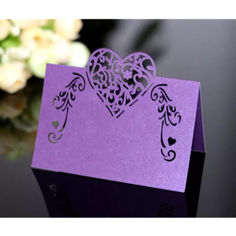 Банкетные карточки для гостей с сердечком 10 штук 9 на 4,5 см фиолетовый