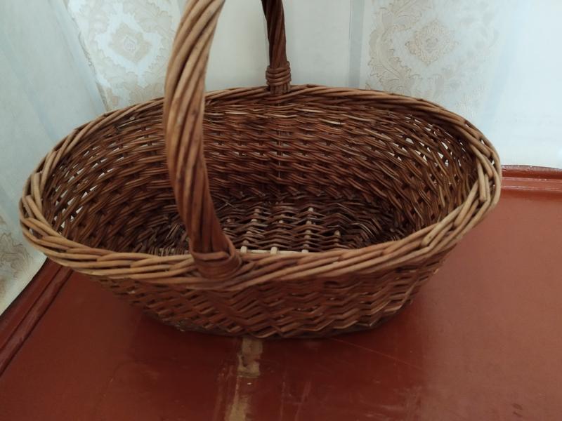 Продам корзину из лозы б/у. Целая. Длина 40 см., Ширина 32 см. Высота без ручки 24 см., С ручкой 50 см.