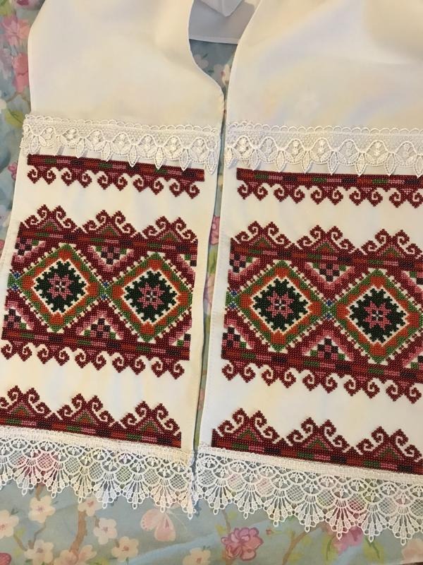 В наявності 2 однакові рушники, ручна робота, ціна за пару 3000 грн. Взаді обклеєні флізеліном.