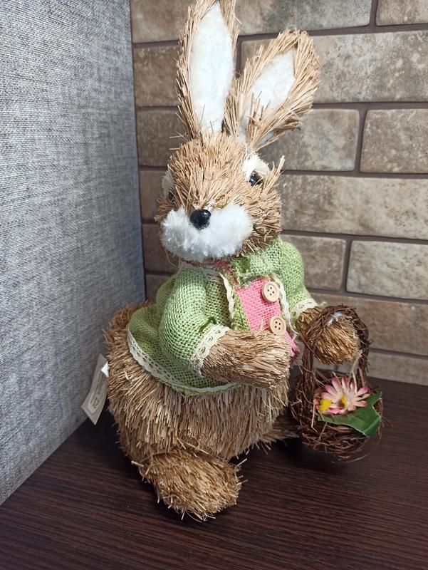 Кролик декоративный эко декор к пасхи, статуэтка солома