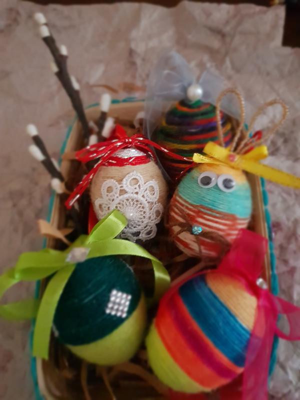 Продам сувенірні великодні яйця.Ручна робота.Декоровані нитками,бісером,намистинками.В кожного яєчка є підвіска. В середині натуральні видуті яйця.Ціна від 50 до 100 гр.за шт.Можна в комплекті з корзинкою(50гр.).Відповіді на всі питання в переписці або дзвоніть.