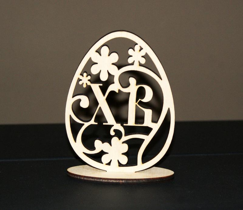Великодні яйце з фанери, виготовлене методом лазерного різання.
