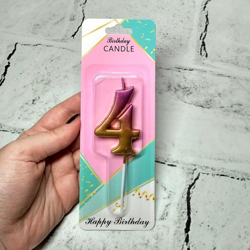 Свеча в торт цифра 4, градиент. Характеристики: Страна производитель - Китай Размеры: Общая высота - 9 см Размер цифры - 5 см Свеча изготовлена из высококачественного парафина. Не содержит вредных для здоровья добавок. Внимание! Не оставляйте без присмотра горящие свечи.