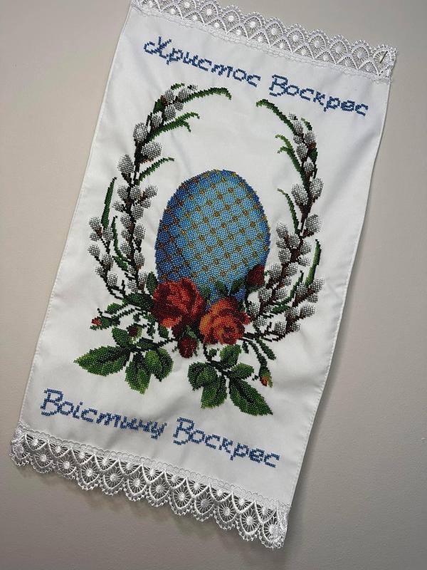 Пасхальное полотенце Длина с кружевом 55 см., ширина 30 см., вышитый чешским бисером, подшитый, готовый к использованию Отличный подарок родным и близким