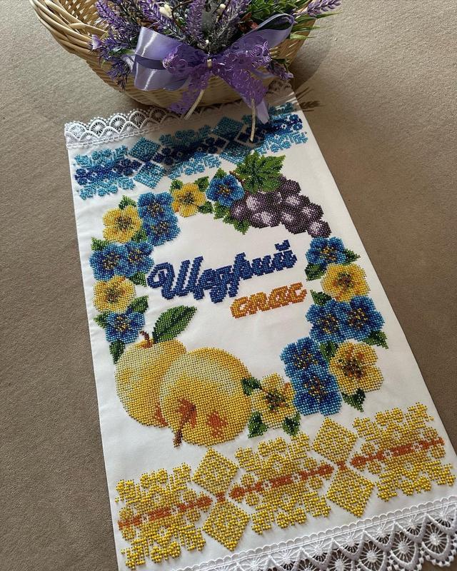 Вышитый чешским бисером спасовский ружье идеальное дополнение Вашей корзины Размер с кружевом: длина - 55 см., ширина - 30 см. Патриотические цвета, может подойти на подарок родным и близким, которые по определенным причинам покатитесь вдали от дома🇺🇦