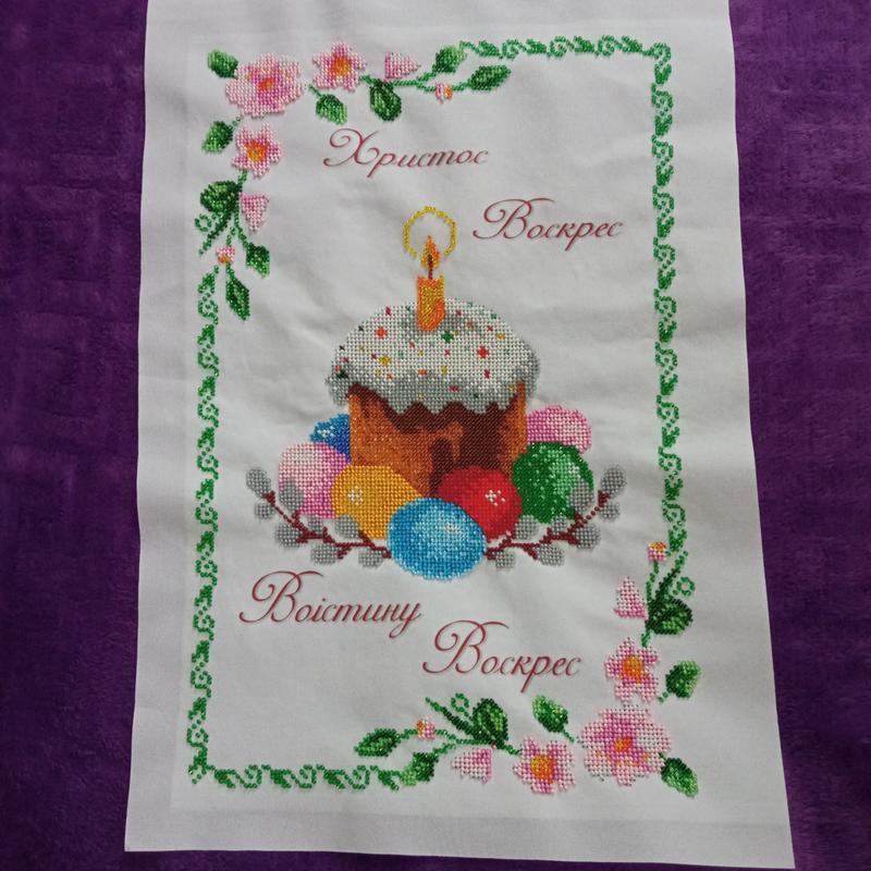 Пасхальное полотенце вышитое бисером