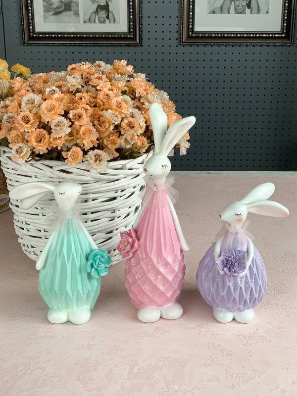Рожева короличка-28 см-590 грн. Зелена короличка-18 см-590 грн. Фиолетовая кармашка-17 см.-560 грн. Материал-полистоун. Королики – это отличный вариант декора на Пасхи и не только! Кролик необычайной красоты и качественного исполнения будет радовать глаз целый год и дарить каждому дому пользу и уют. Пасхальный кролик выполнен из качественного материала – полистоуна, белого цвета, держит в лапках цветок. Фигурка устойчивая.