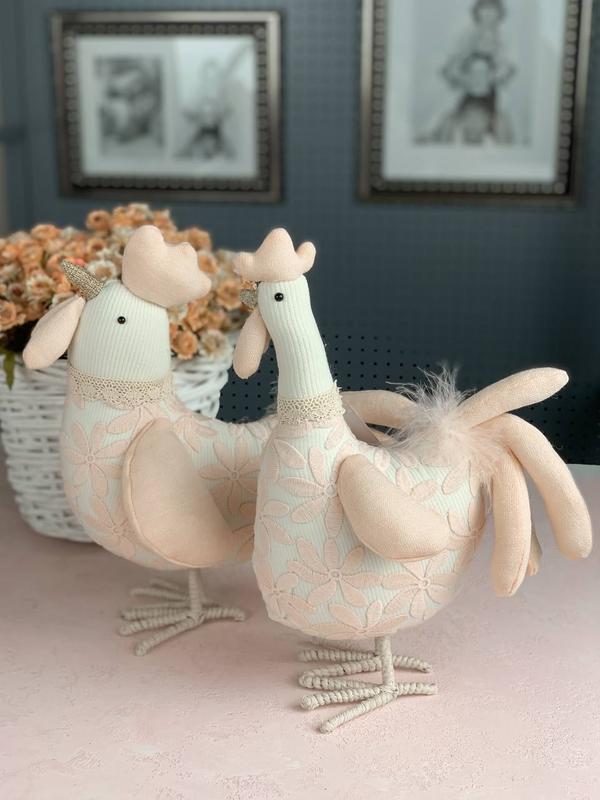 Фигурка "Бодняя курица", 35 см-590 грн. Фигурка "Бодняя курица", 33 см-550 грн. Текстильная курица - это отличный вариант декора на Пасхи и не только! Курочка необычайной красоты и качественного исполнения будет радовать глаз целый год. Также эта мягкая игрушка - милый подарок для близких и детей! Курочка имеет розовый цвет, декоративный наряд в виде цветков и пушистые перья. Хвостик гнучкий. Фигурка устойчивая.