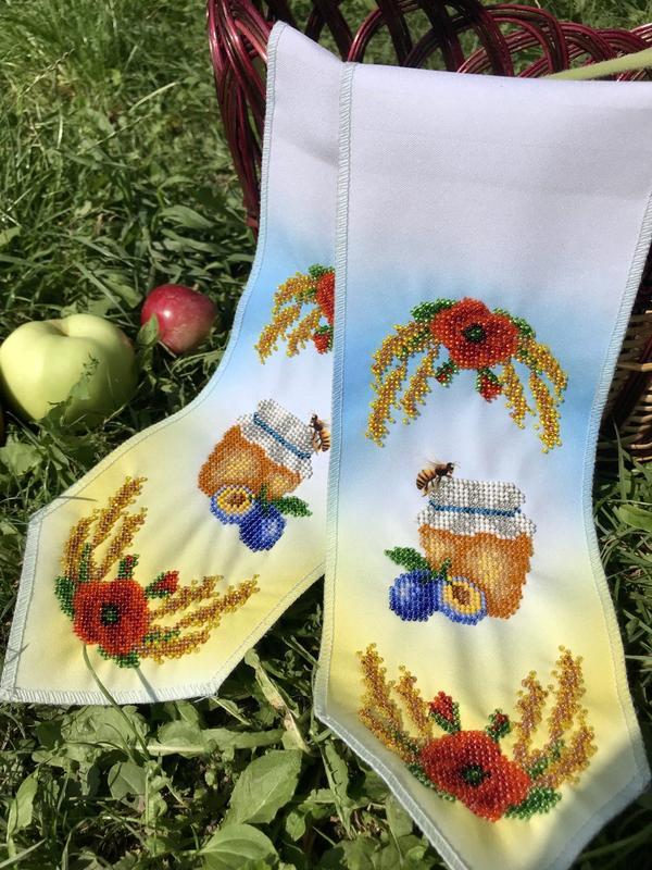 "Бант для корзины на Спаса вышит качественной ярким чешским бисером. Размер банта 145*11,5 см. Ручная работа, вышита с любовью, качественно и аккуратно. Вышиваю под заказ, обратитесь, буду рада ответить на все вопросы."