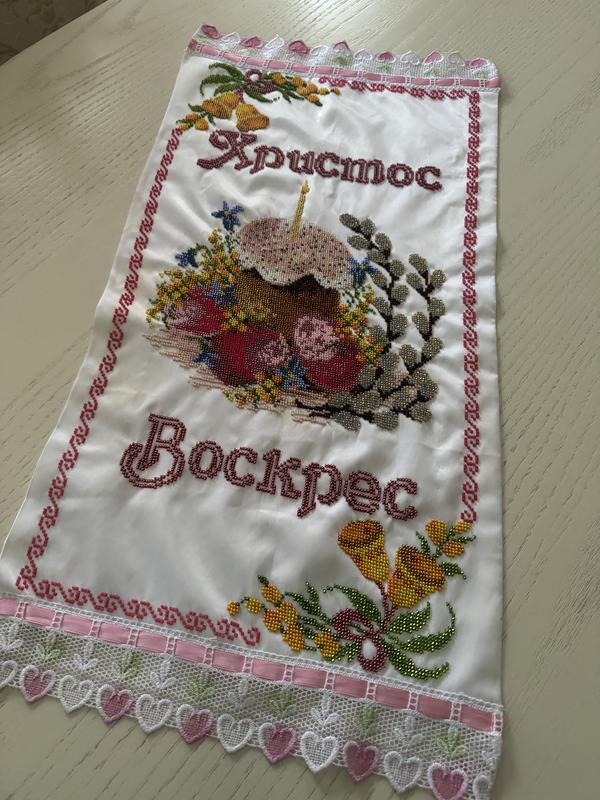 Пасхальное полотенце вышитое бисером. Прикрашений кружевом. Тканина атлас. Ручная работа. Возможен торг.