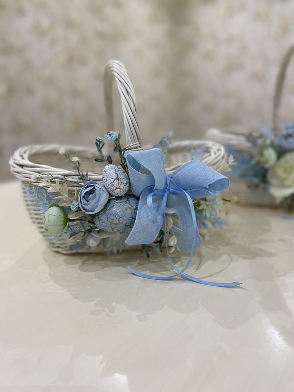 Крупная корзина овальной формы лодочкой. Выполнен из меловой лозы, качественный декор. Размер 30*21