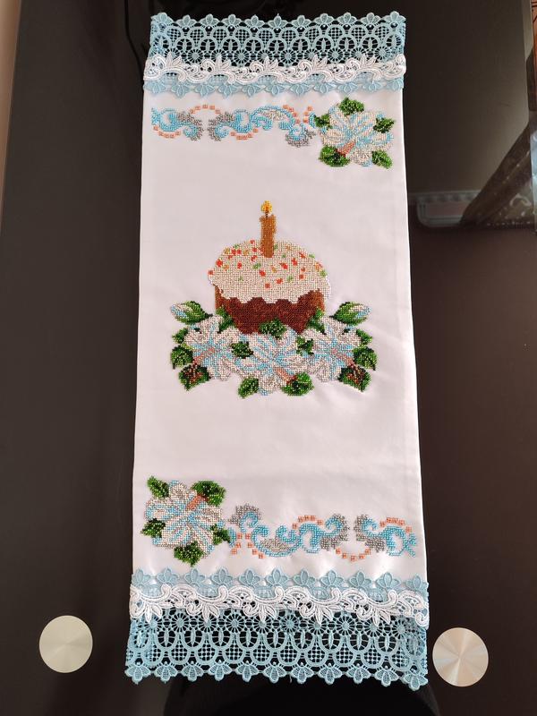 Полотенце крупное, вышитое чешским бисером. Украшен и подшит габардином.