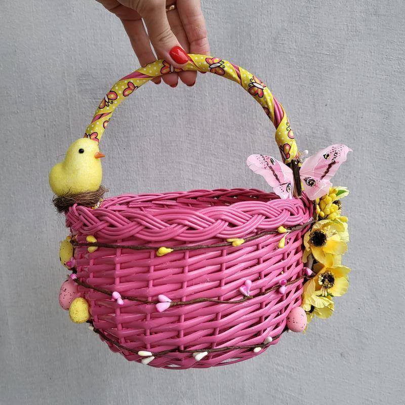 Дитячий пасхальний кошик плетений з лози та пофарбований в насичений рожевий колір. Пропоную різні розміри кошиків відповідно до віку дітей : Діаметр 16 -17 см - 365грн (до 4 років) 18-19 см - 380 грн від 5 років 20-22 см - 400 грн 8 -9 років і старше