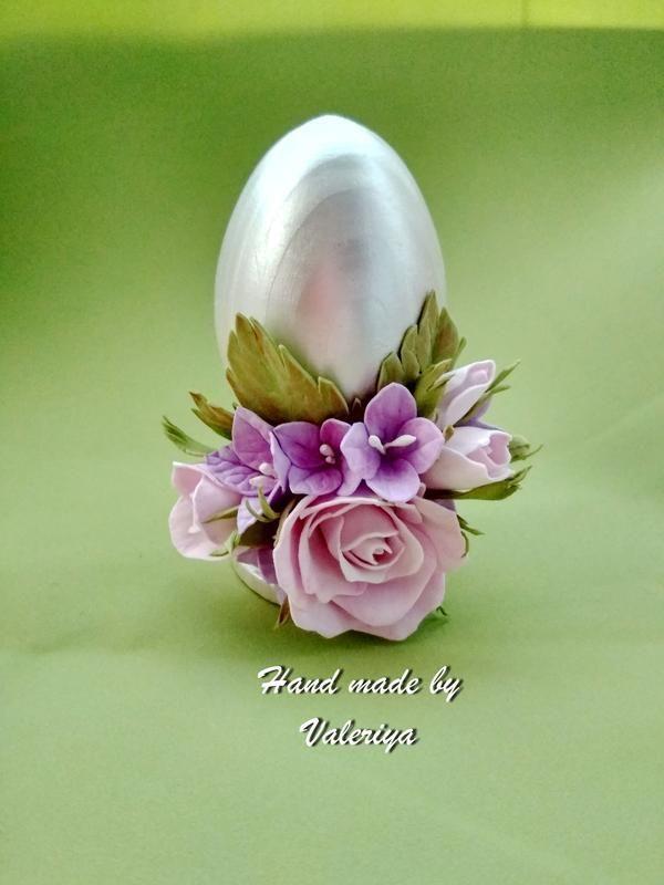Деревянное яйцо украшенное цветами из фоамирана ручной работы. Прекрасный эксклюзивный подарок (выполнено в единственном экземпляре) близкому человеку или себе. Небольшое (высота 9 см, ширина композиции 7 см.), легкое (всего лишь 47 гр.). Цветочки нежные бледно-розовые розочки и сиреневая гортензия.