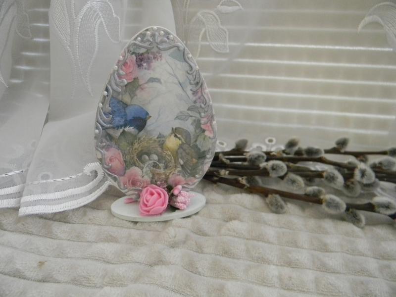 Декоративное пасхальное яйцо с птичками и гнездышком принесет праздничное настроение в Ваш дом и украсит рабочее место в офисе. Будет отличным и оригинальным подарком для друзей, родных, коллег! Яйцо декорировано в технике декупаж, украшено объемными узорами и цветочками. С разных сторон яйца разные изображения. Все используемые материалы экологически чистые на водной основе. Можно использовать в доме, в котором есть детки и домашние животные. Размер: высота 12 см, ширина 8 см По индивидуальному заказу возможно изготовление яиц с другими изображениями.
