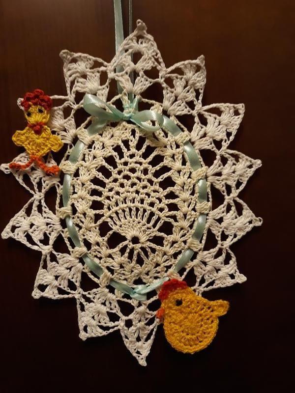 Веночек на дверь или на окно.сделано из натуральных нитей.интересный подарок на Пасху.
