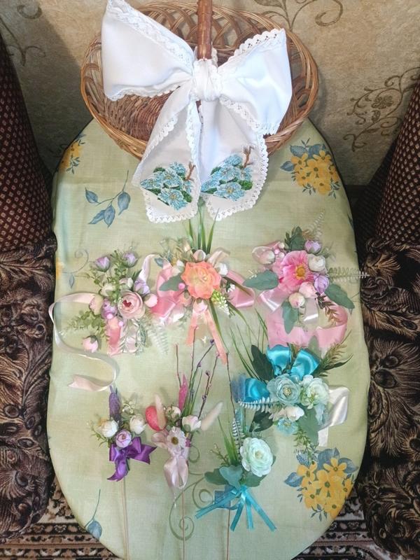 Съемное украшение для корзины.. Размер 15*15 см. Украшение крепится атласными лентами к корзине