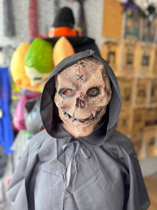 Маска череп мешковина, швы, улыбка, маска резиновая