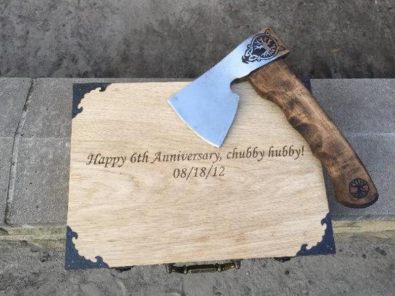 Ищете необычный кованый топор? Вы в правильном месте! Вот он! Размеры: - длина ручки (из белой акации): 25 см - длина наконечника топора: 16,5 см - рабочая длина лезвия: 10,5 см - вес нетто: 0,6 кг К топору прилагается деревянный футляр, на котором можно выгравировать имя или дату. В стоимость входит: топор, деревянный футляр, гравировка на деревянном футляре. Цвет: коричневый - очень замечательная ручка! На головке топора выгравировано дерево жизни, а на ручке также вырезано дерево жизни. Этот подарок станет прекрасным на годовщину свадьбы (6-я или 11-я), день рождения, День отца и многие другие случаи. Это не только функциональное произведение искусства, но и прекрасное украшение для вашего дома!
