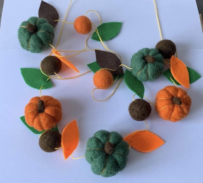 Осіння гірлянда з гарбузиків прикрасить вашу оселю, додасть трішки затишку та тепла. Виготовлена в техніці сухого валяння. Можливе виготовлення за вашим побажанням