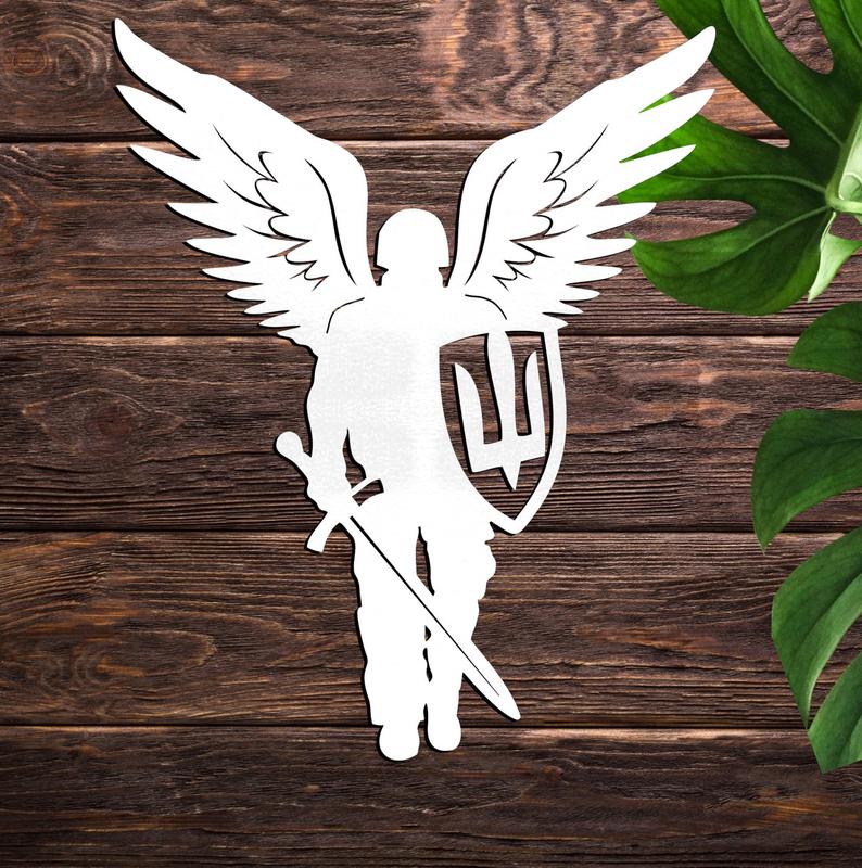 Деревянна фигурка "янгол охоронець з мечем та щитом (без палички)" 14х12 см белый топер дл...