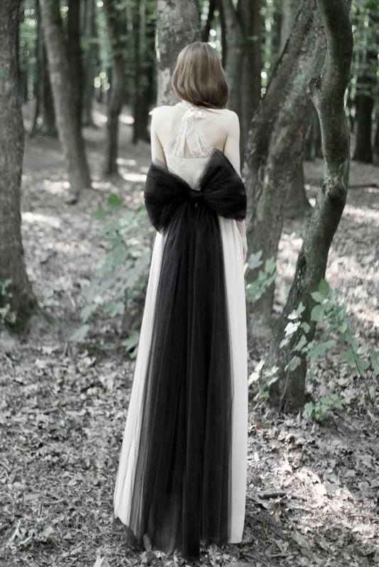 Большой бант на поясе из ленты длина 100 см цвет: черный и белый
