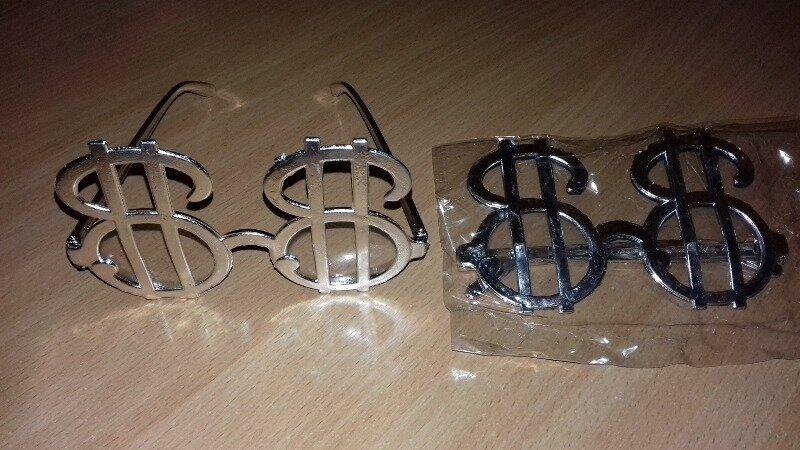 Безпечною оплатою пересилаю товар тільки укрпоштою від 100 гривень. Новою поштою пересилаю товар від 100 гривень тільки по повній передплаті. Перед будь якою покупкою, будь якого товару писати продавцю для уточнення Очки Доллар серебристые для праздников, вечеринок. Материал -пластик. Новые. Очки Доллар золотистые для праздников, вечеринок. Материал -пластик. Новые.