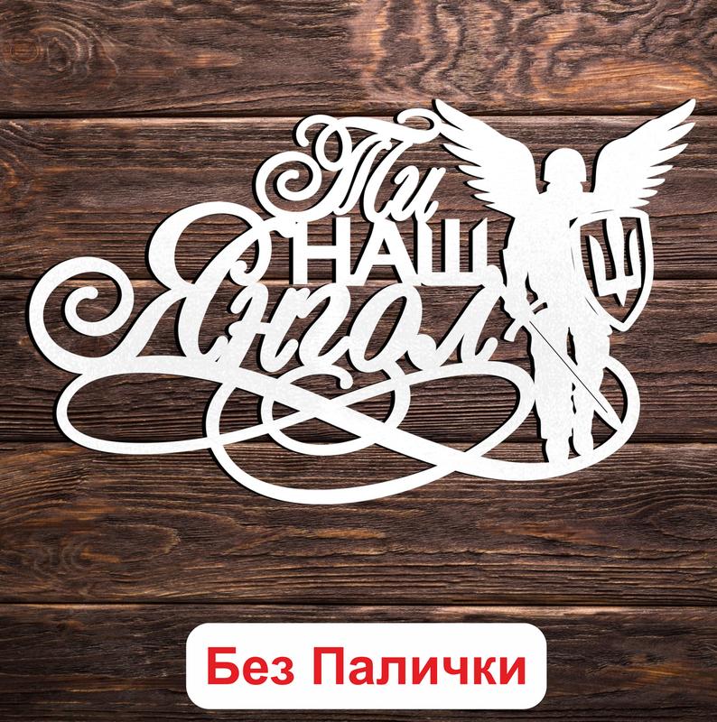 Белый топпер "ти наш янгол" (без палочки, без упаковки)" 14х8см фигурка в букет надпись за...