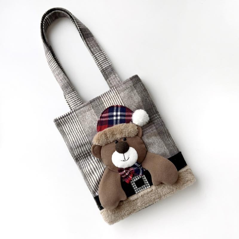 Новогодняя сумка для подарков на подкладке с длинными ручками (комплект 1) медведь