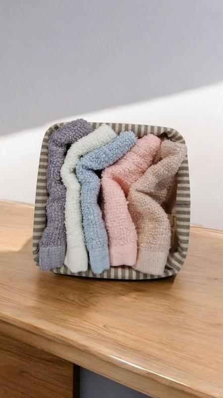 Набір "М'який кошик" Тканина: махра 5 серветок різного кольору Розмір кошика 15/11, серветки 25×25