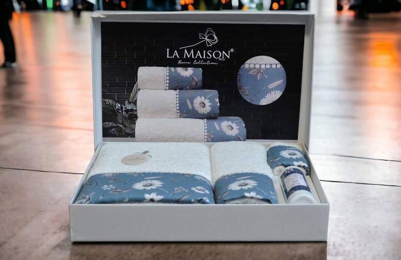 Подарочный набор полотенец La Maison с ароматом Elanor • Тканина: махрова • Состав: 100% хлопок • Плотность: 500 г/м2 • Размеры: • 30 × 50 см — 1 шт. • 50 × 90 см — 1 шт. • 70 × 140 см — 1 шт. • Количество в упаковке: 3 шт. • Производитель: Турция • Упаковка: фирменная подарочная коробка Идеальный выбор для стильного подарка или для собственной спальни! Цена: 1800 грн