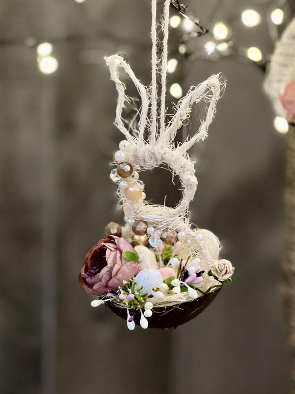Вишукані Великодні іграшки ручної роботи. Виготовлені з екологічних матеріалів, кокосової шкаралупи. Оздоблені скляними намистинами. Ціна за 1шт від 200 до 280 грн. Ціна від 10 шт. 180-250 Також можливо замовити комплект іграшок однакового дизайну. Строки замовлення узгоджуються в переписці.