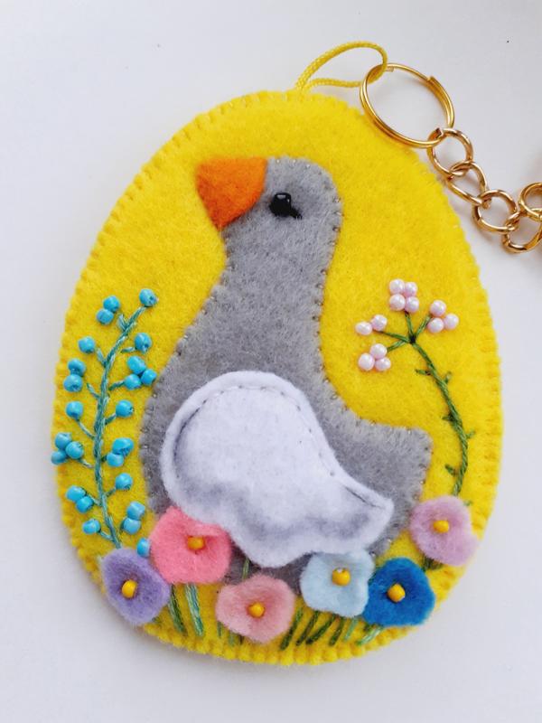 Писанка з гусиком і з вишивкою, великодній сувенір, брелок