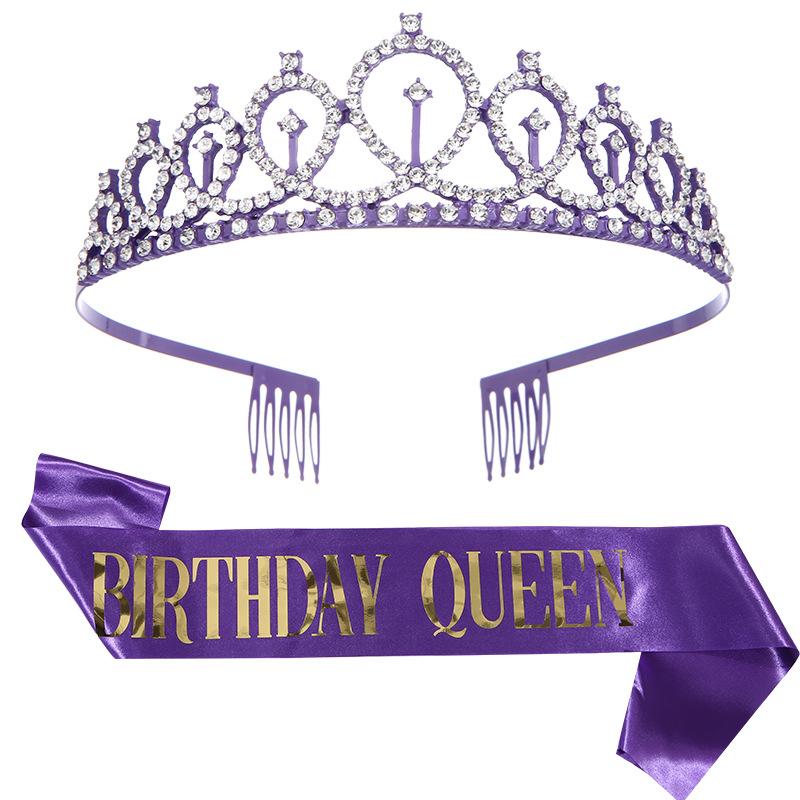Чудовий та неповторний набір на день народження. Набір на день народження складається із стрічки через плече (шпильки в комплекті немає) та обруча тіари з написом Birthday Queen. Підкреслить Вашу індивідуальність, стане красивим та оригінальним подарунком. Колір - фіолетовий Заміри тіари - довжина 40 см, діаметр 12 см, висота 4 см. Заміри стрічки - довжина 160 см, ширина 9 см.