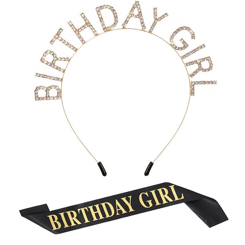 Набір на день народження стрічка обруч зі стразами birthday girl 12317