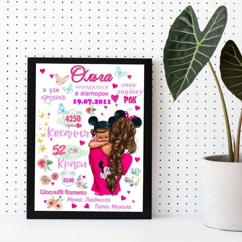Детская метрика-чудний, оригинальный подарок, сохраняющий важнейшие детали рождения малыша в одном постере. Метрика-быва будет радовать родителей, напоминая о самой счастливой дате в их жизни и будет эстетически вписываться в любой интерьер. Идеально подойдет для подарока матушкам новорожденных малышей, крестины, год малышей и т.д. Доступная цена (А4 в рамочке 230 грн., без рамочки 180, другие размеры по запросу) Индивидуальный дизайн (включаем все ваши фантазии и прихоти) Выполнение 1-3 дня. Доставка по Украине по любой почте. Оплата за договоренностью (предоплата, наложенный платеж, ОЛХ доставка) Гарантируем качество и положительные эмоции!