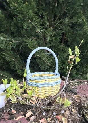 Корзинка для малышей ручной работы из крафтовой лозы. Покрыт лаком на водной основе без запаха; прочный, влагостойкий, гладкий. Можно использовать для пасочки-голубика, как игрушку, органайзер, декор детской комнаты. Диаметр 14 см, высота 10 см, с ручкой - 22 см.