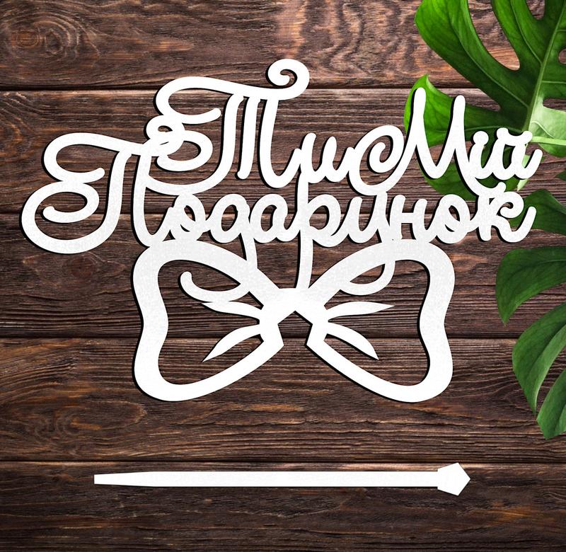Деревянный топпер "ти мій подарунок" 14х9cм белый топер для торта, в букет цветы фигурка и...