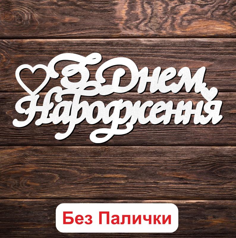 Деревянный топпер "з днем народження (без палочки) 2" 13х6cм белый топер для торта, в буке...